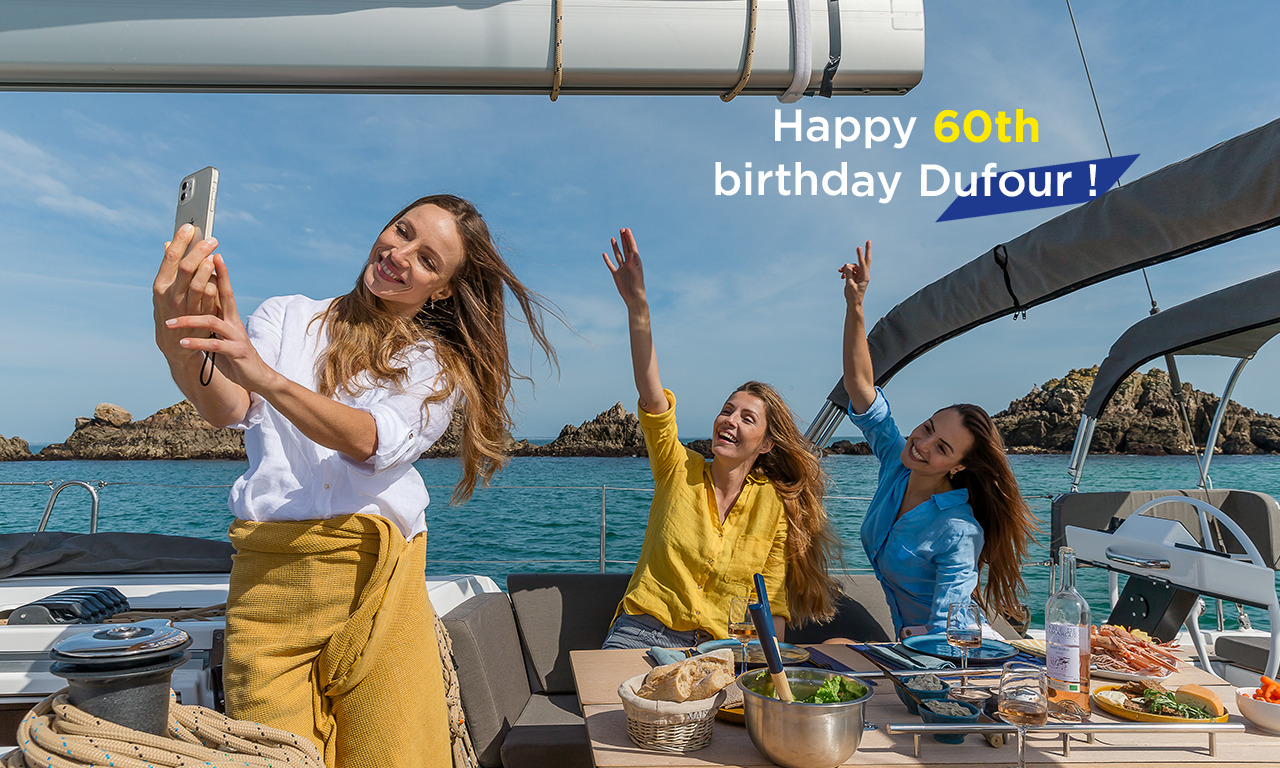 Nous vous proposons de vous filmer à bord de votre Dufour et de souhaiter un joyeux 60ème anniversaire au chantier (dans votre langue natale). En partageant cette vidéo avec le #MydufourandI2024 et en nous taguant, vous recevrez un magnifique livre à paraître en septembre sur l’histoire de Dufour Yachts et de la voile. D’autres surprises sont à prévoir…